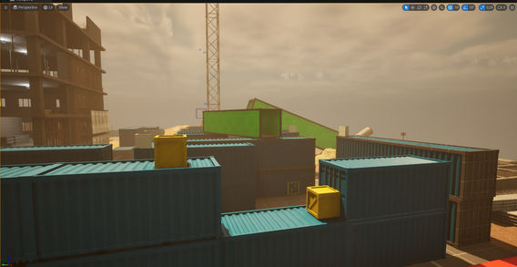 Refined the container layout by introducing varied vertical levels, offset stacks, and controlled cover spacing to shape the combat rhythm.
